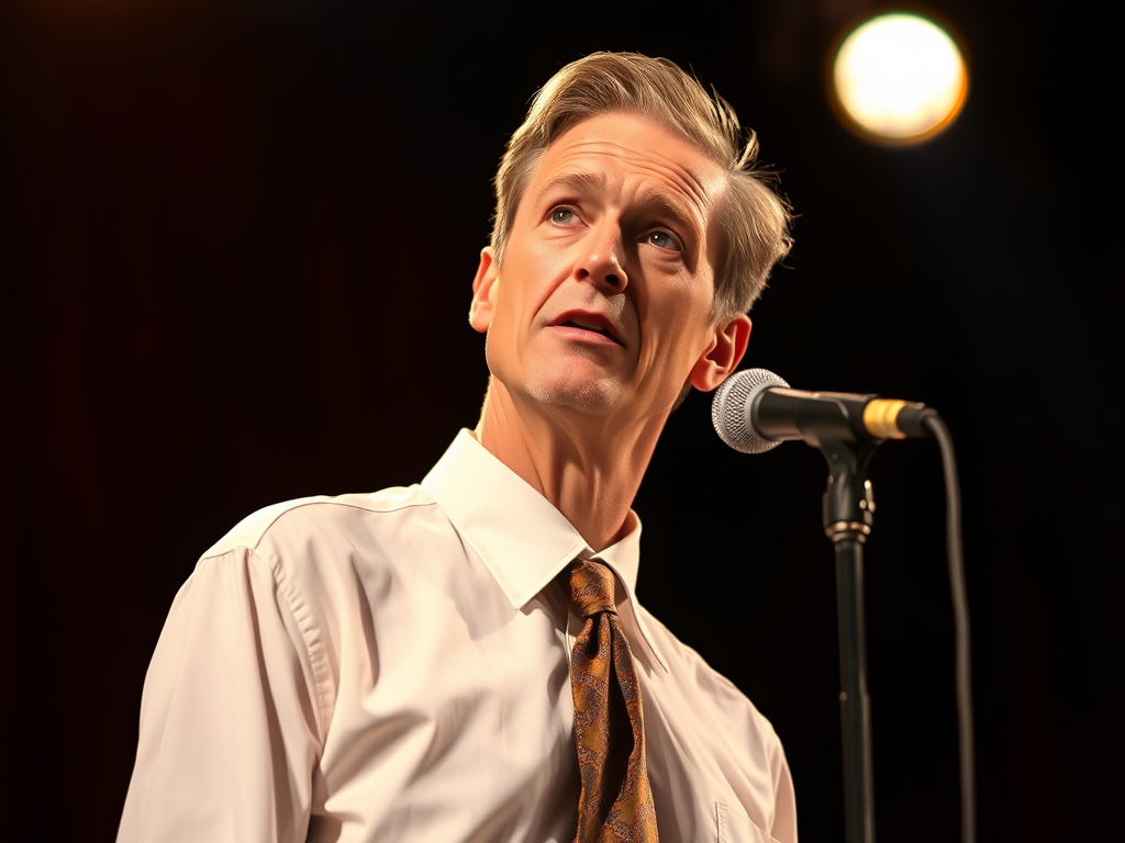Occasionally, his voice breaks or cracks a little, which can detract from a punchline or crucial moment in his act…